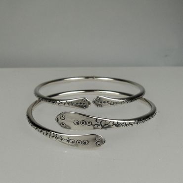 The Orb range contains some of my earliest designs. It has continued to grow and proved to be a popular line, especially bangles which I continue to produce. The concept originated from elliptical shapes patterned with markings from stone megaliths and Saxon artifacts.